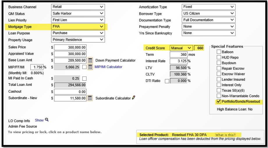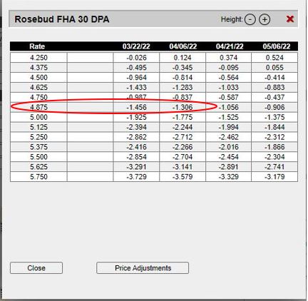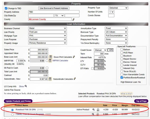 Once you choose the Rosebud program it will take you to the Pricing Sheet and this is where you will be able to choose the rate you want your borrower to have.