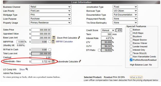 When locking the first mortgage loan, the DPA amount will need to be manually deducted from